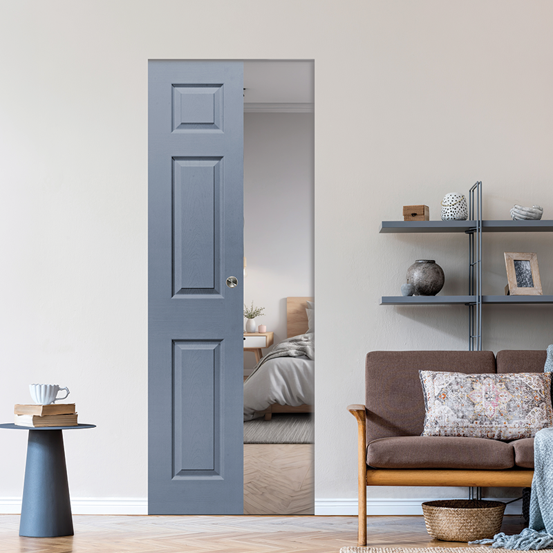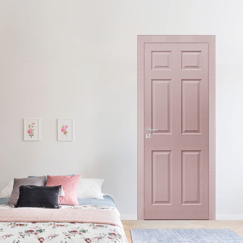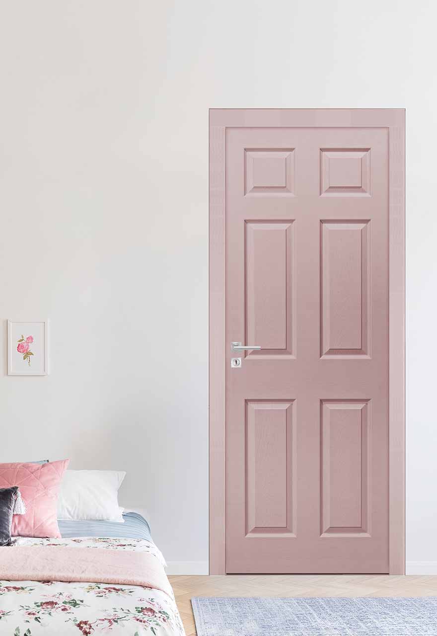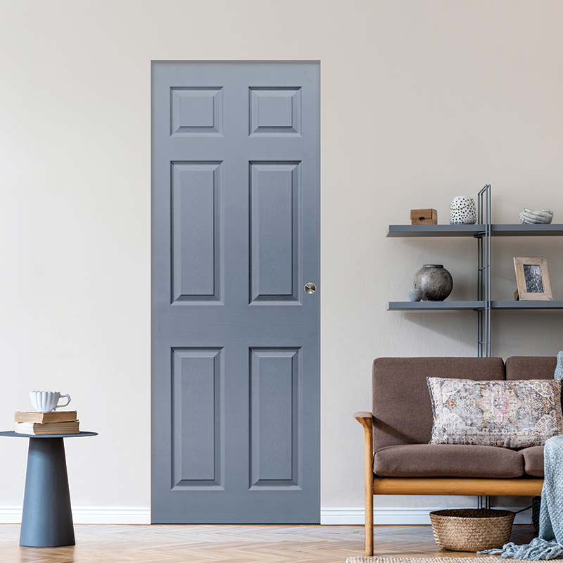 Vous pouvez revêtir la porte avec la couleur de votre choix grâce à la couche d’apprêt préparant celle-ci. Son panneau « 6 blocs » donnera du style à votre intérieur.